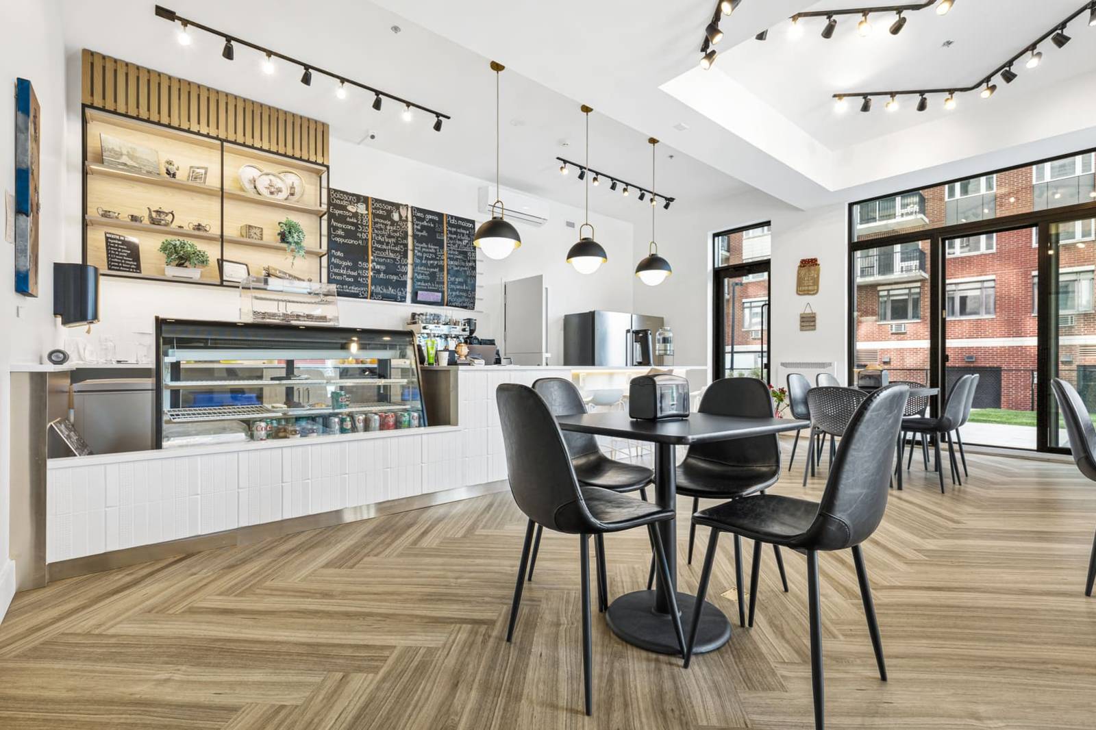 BBQs, an in‑house café, landscaped courtyard, and an enclosed dog park. The building